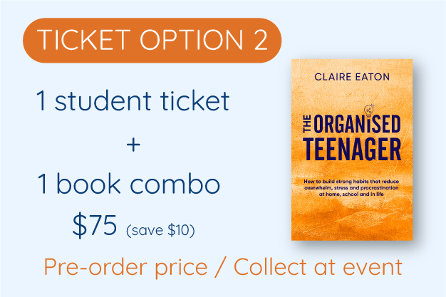 CLAIRE EATON will be sharing her popular session with students in year 7, 8 and 9. Because teenagers find high school so much easier when they are organised, can manage their time and know how to prioritise tasks, homework, seeing friends, playing sport and general life events. Every parent wants their child to feel ready to make the most of high school, equipped with executive function strategies and tools that are teen-friendly and simple to apply before school, at school and using the planner. Claire will be drawing upon her 30+ years experience and books she has written especially for high schoolers.